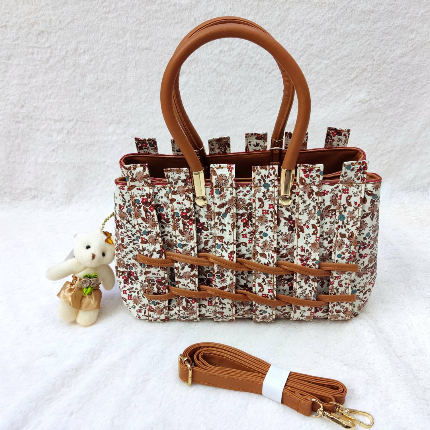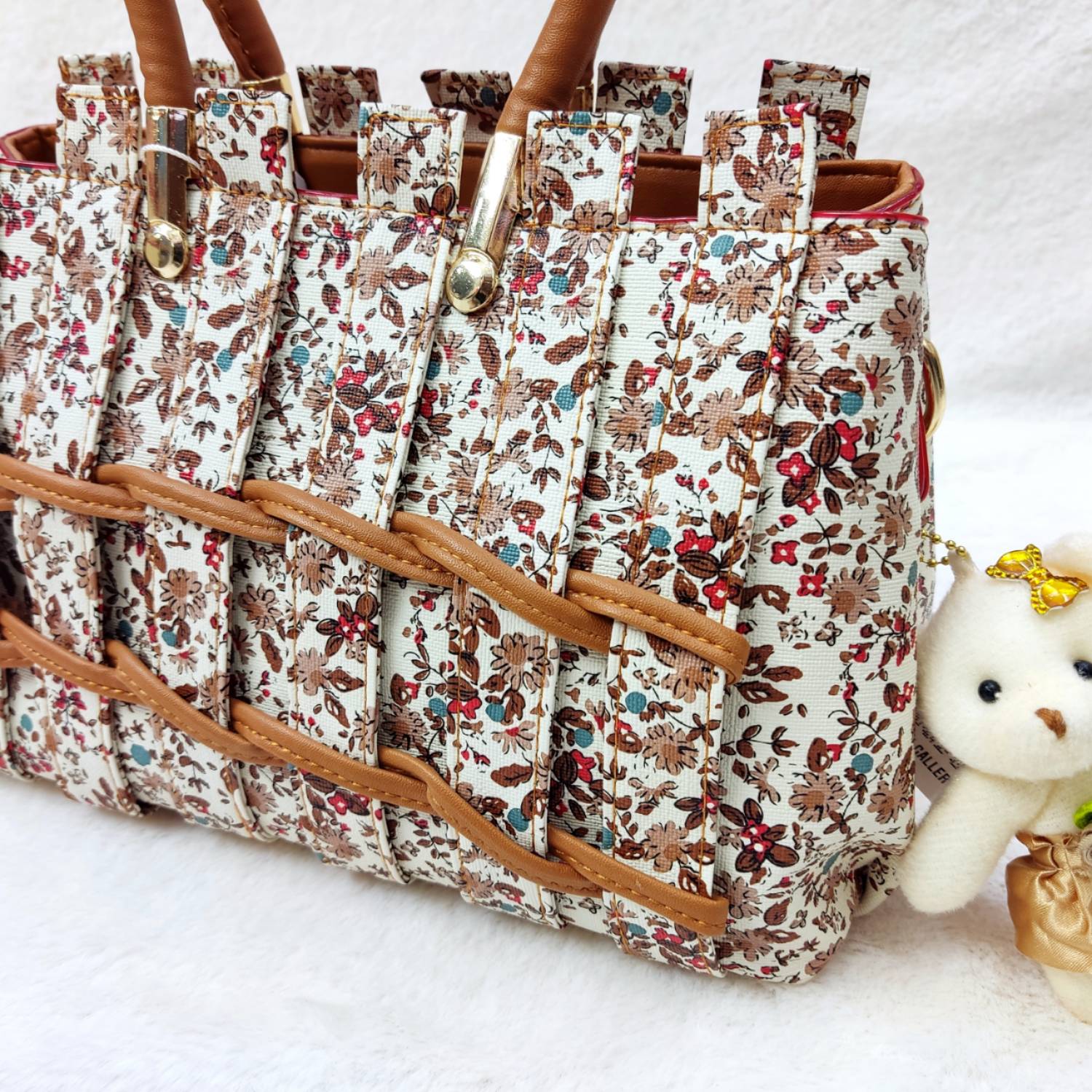 کیف زنانه آرکاد، شیک و زیبا و شاد ، طرح سبد گل رز ، جنس خارجی وارداتی مدل 4502