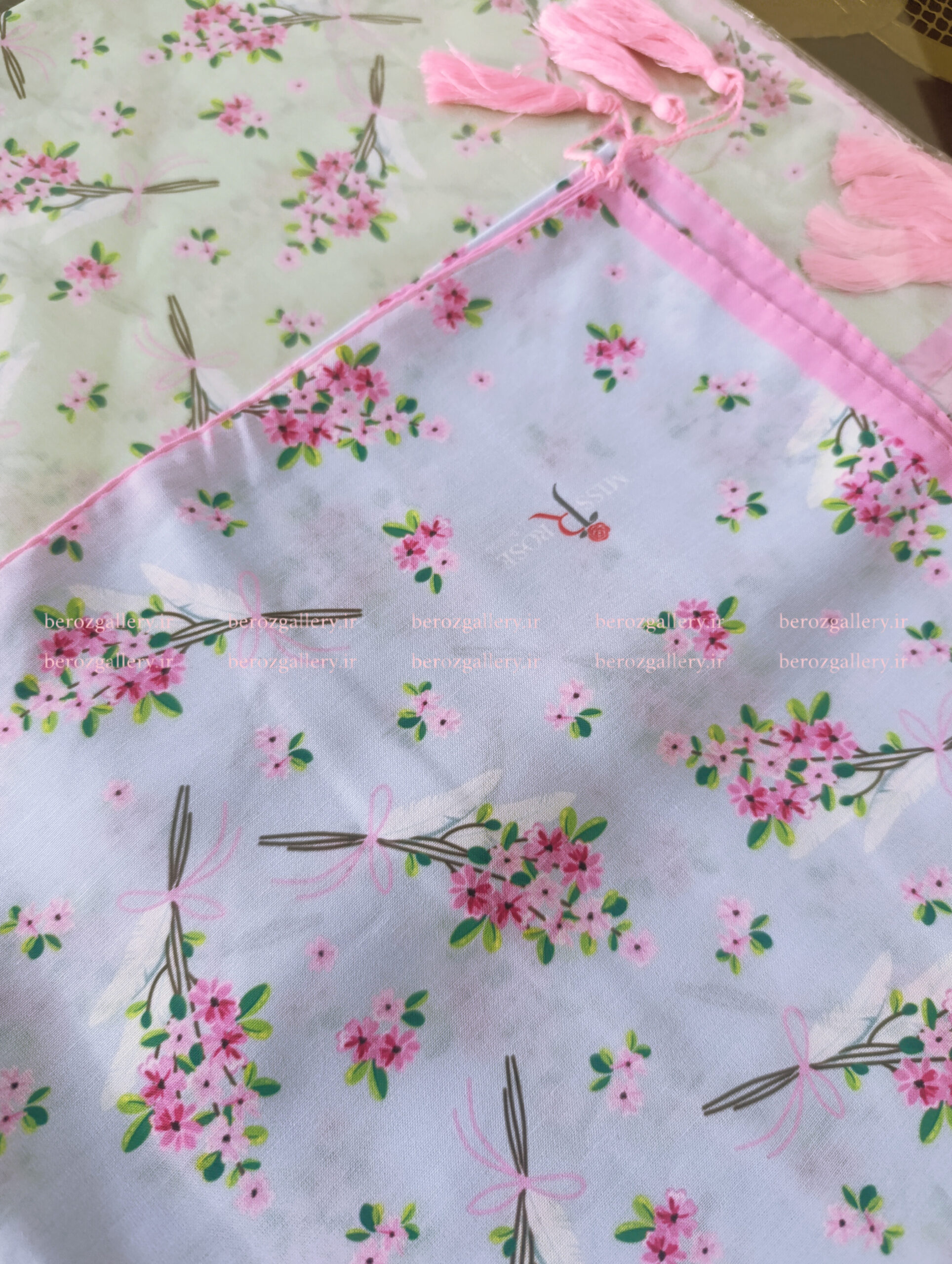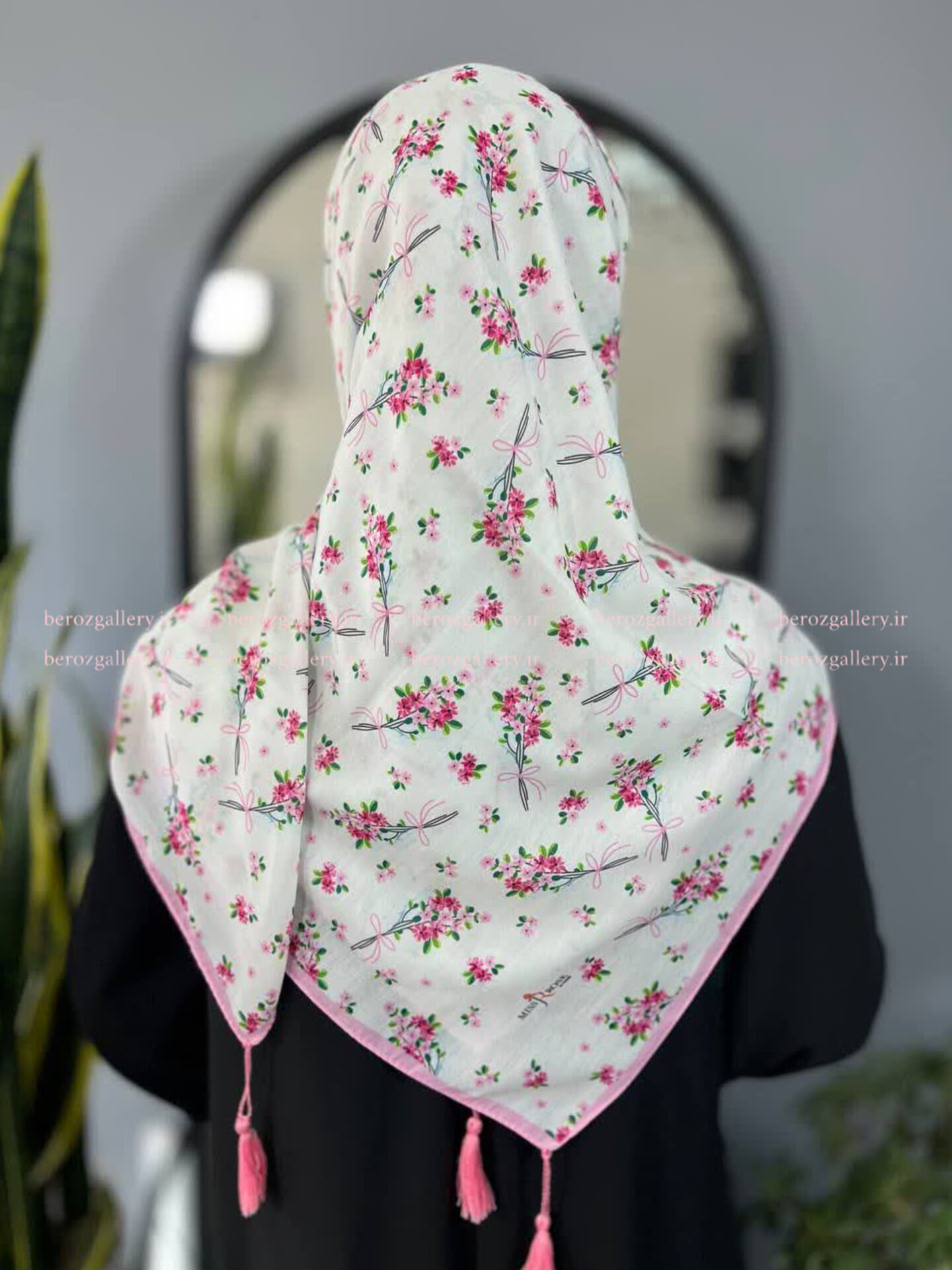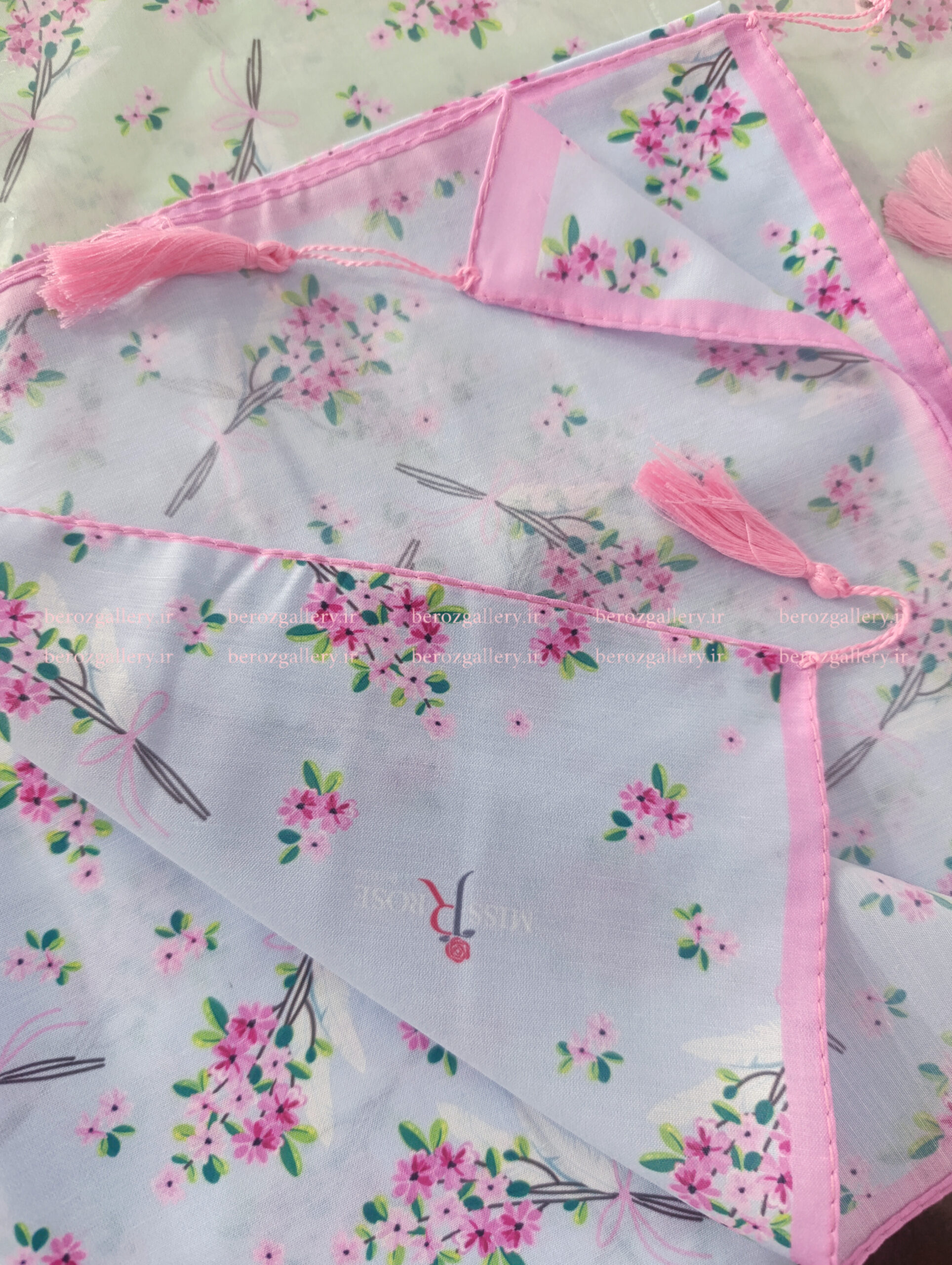 روسری سوپر نخ گلدار قواره ۱۰۰ روسری دخترانه قواره کوچک