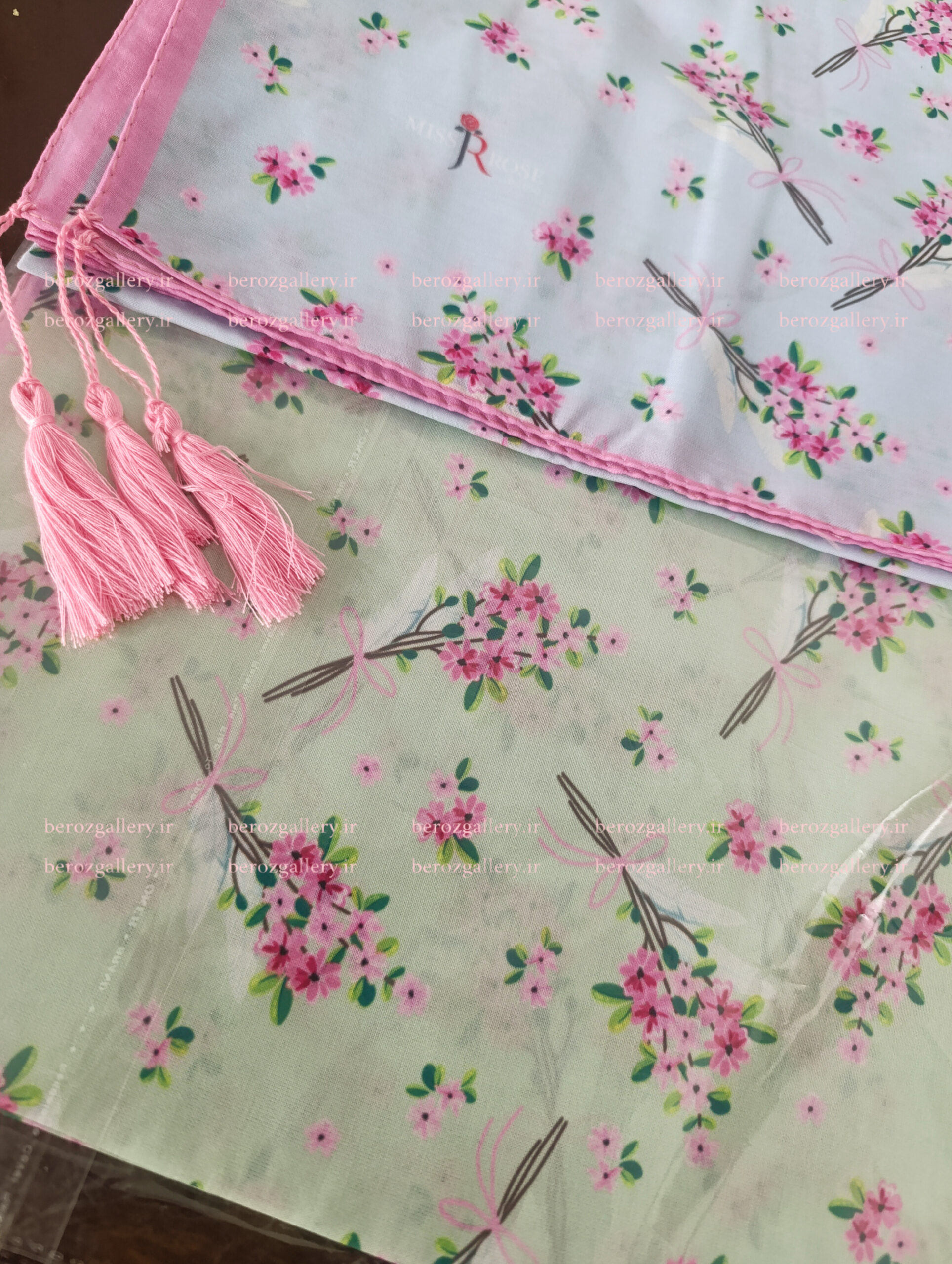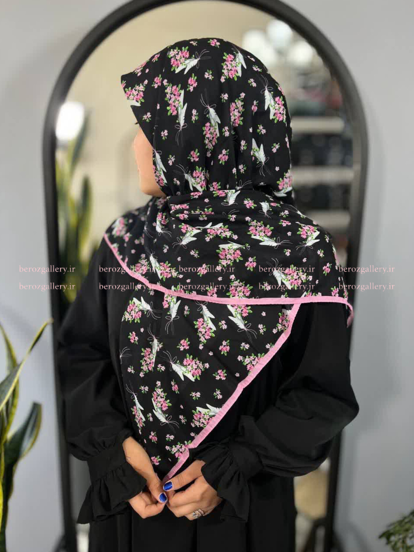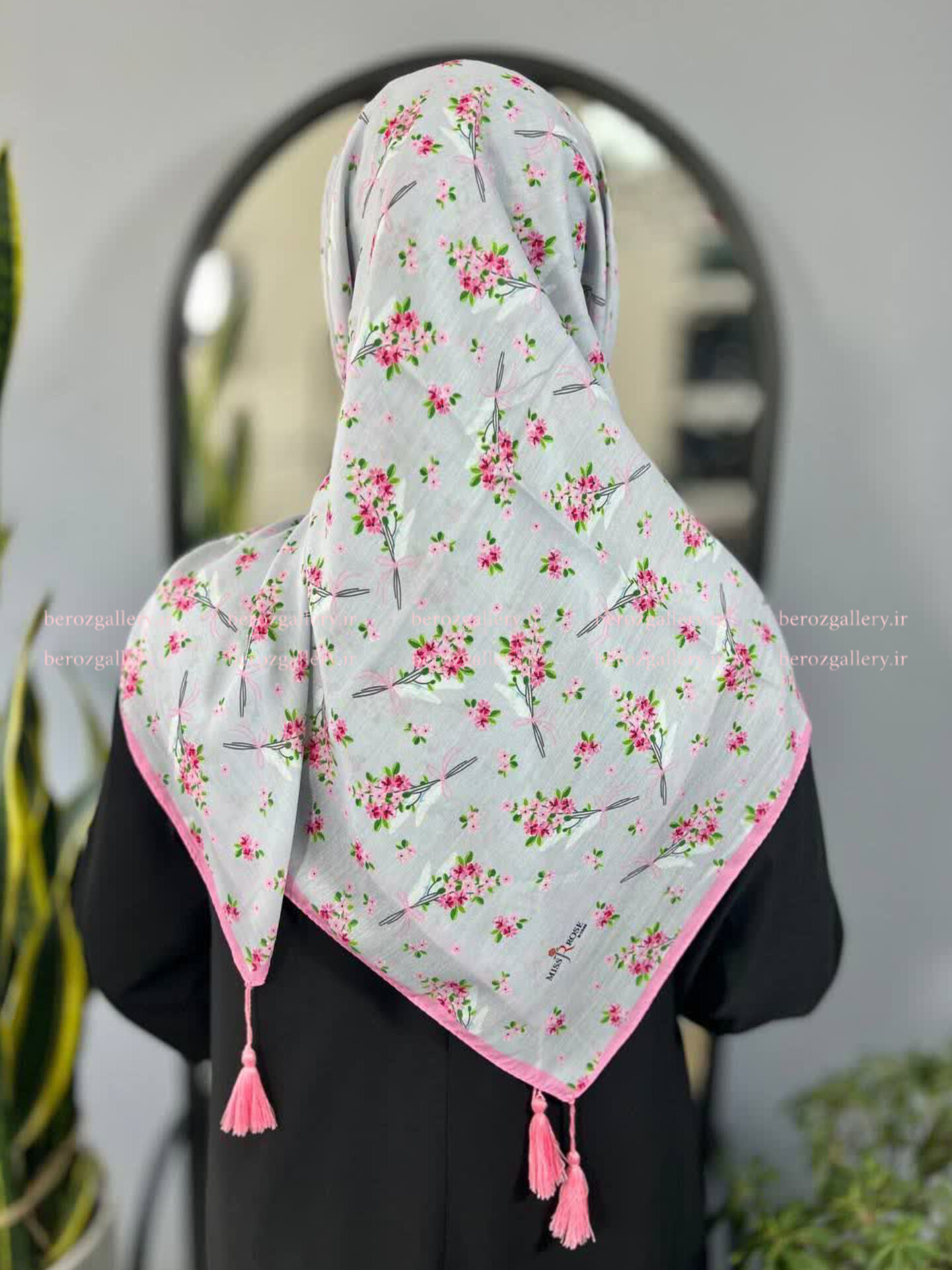 روسری سوپر نخ گلدار قواره ۱۰۰ روسری دخترانه قواره کوچک